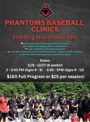 RG Phantoms Baseball Camp 2026 9 - 12 Year Olds Tuesdays 5:30PM - 7PM January 6th - February 10th